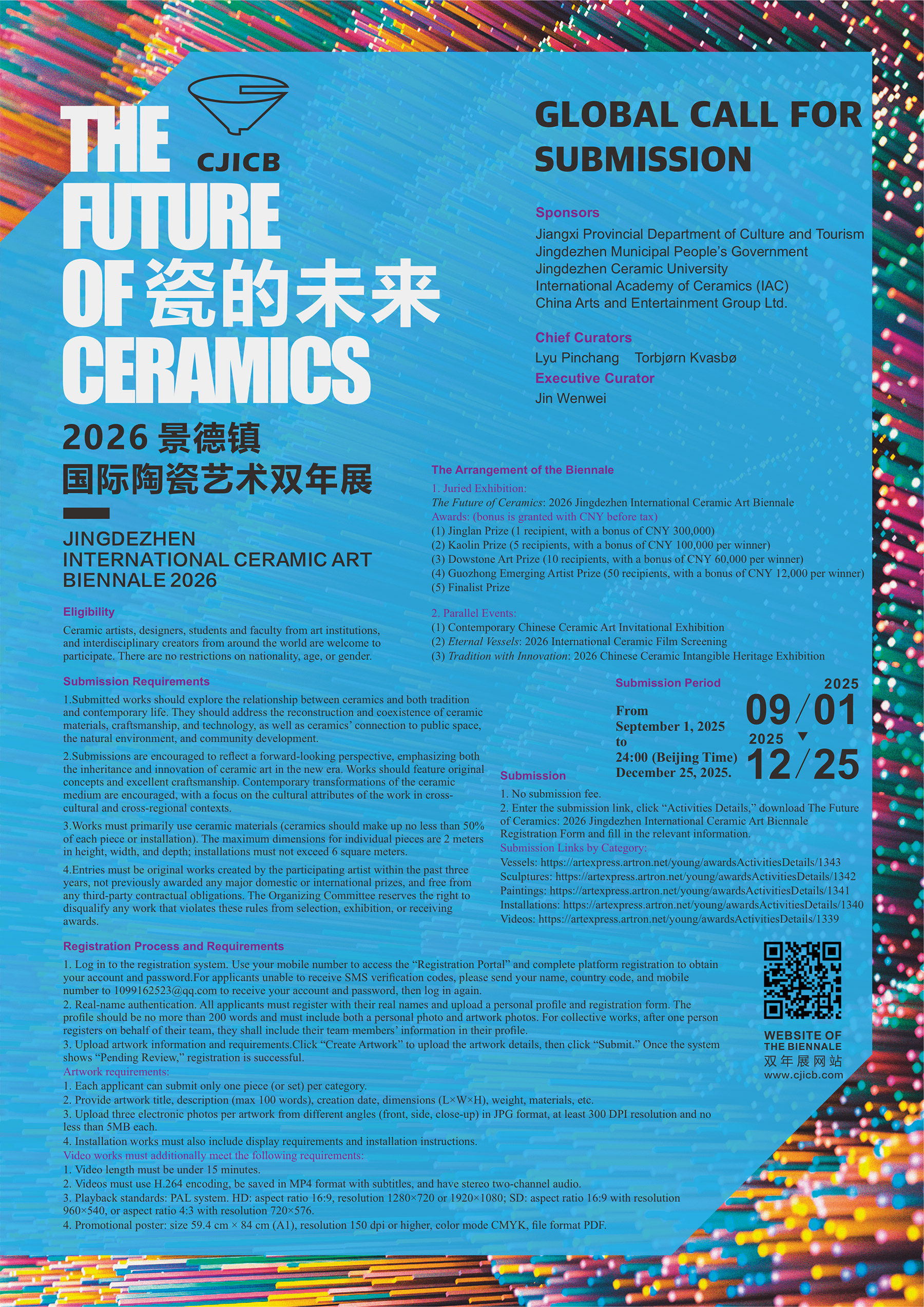 nter the submission link, click “Activities Details,” download The Future of Ceramics: 2026 Jingdezhen International Ceramic Art Biennale Registration Form and fill in the relevant information. Submission Links by Category: