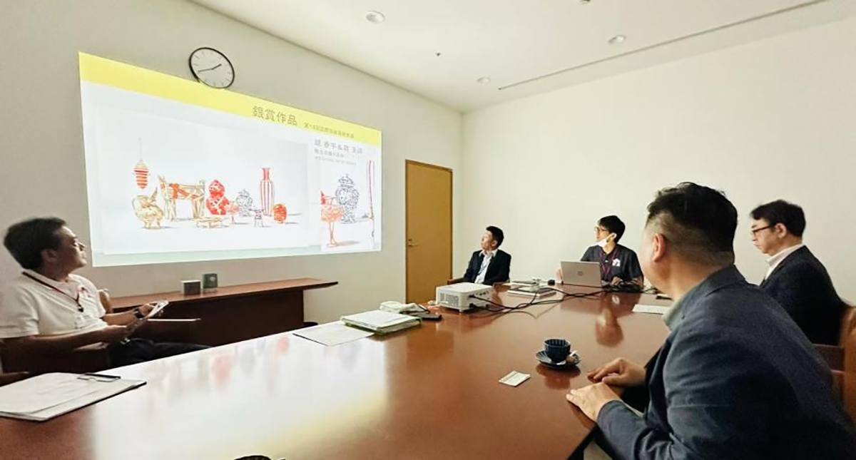 Photo: Working Meeting Scene with Harumi Nakajima, Director of the Pottery Design Research Institute of Tajimi City and Local Officials.